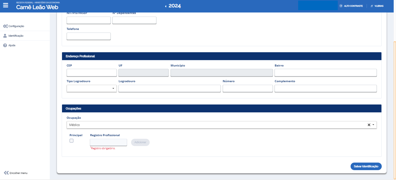 É importante destacar que, para que tenha acesso ao perfil profissional, o prestador de serviços deverá incluir em seu carnê-leão a sua ocupação na ficha de identificação: